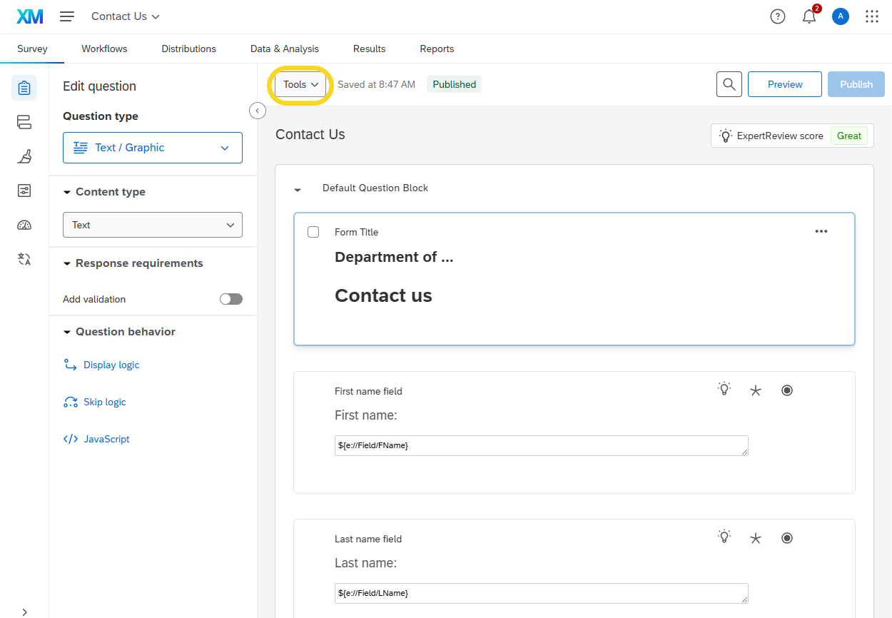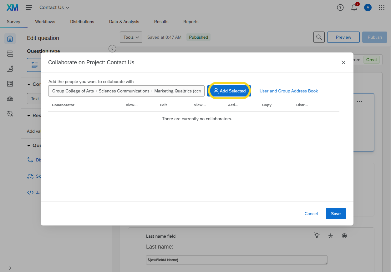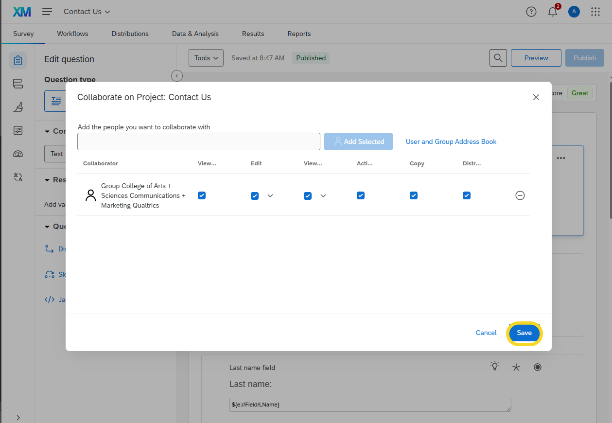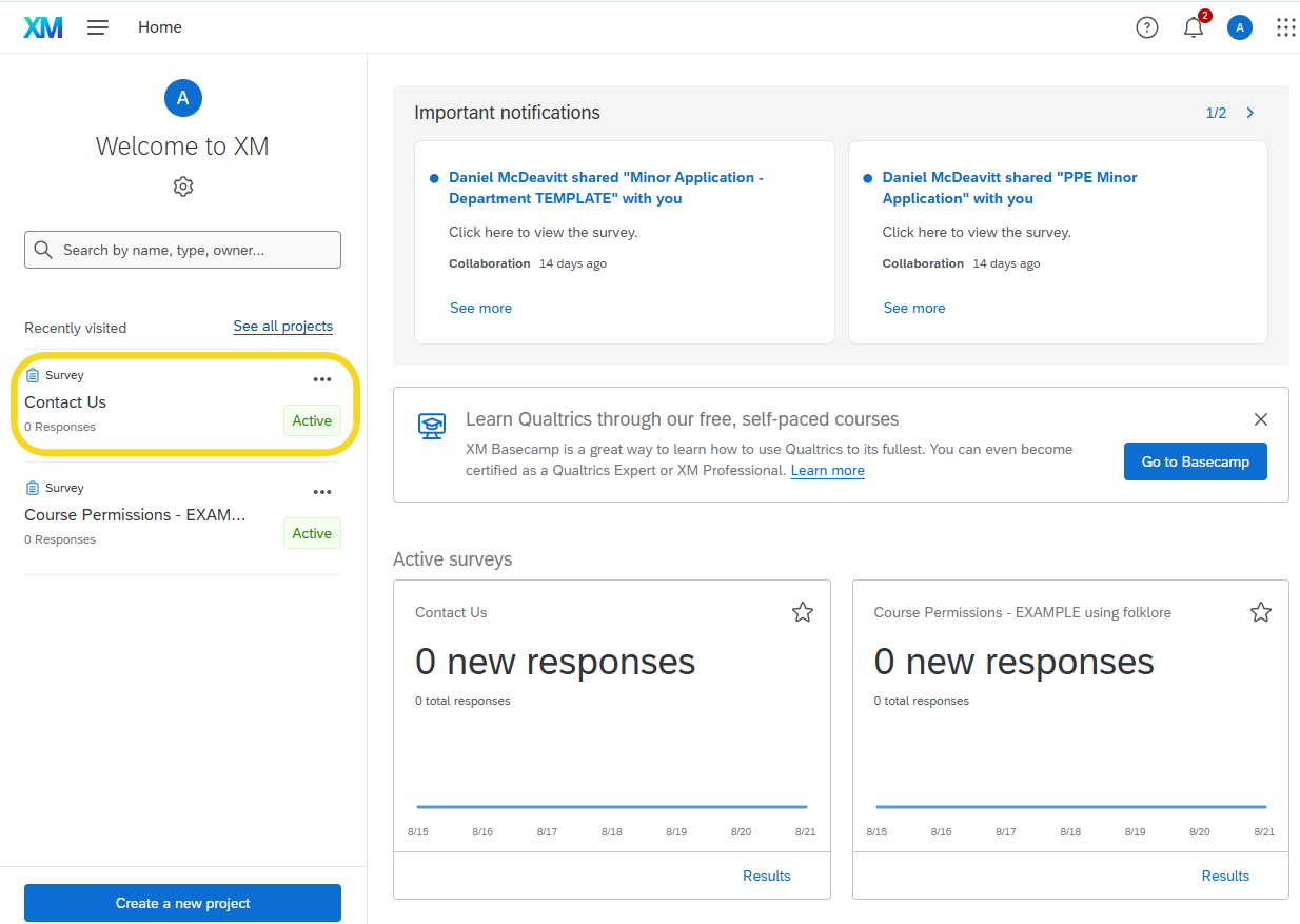Log in to Qualtrics. On the left side of the screen, under Welcome to XM, click on the form you would like to grant access to.