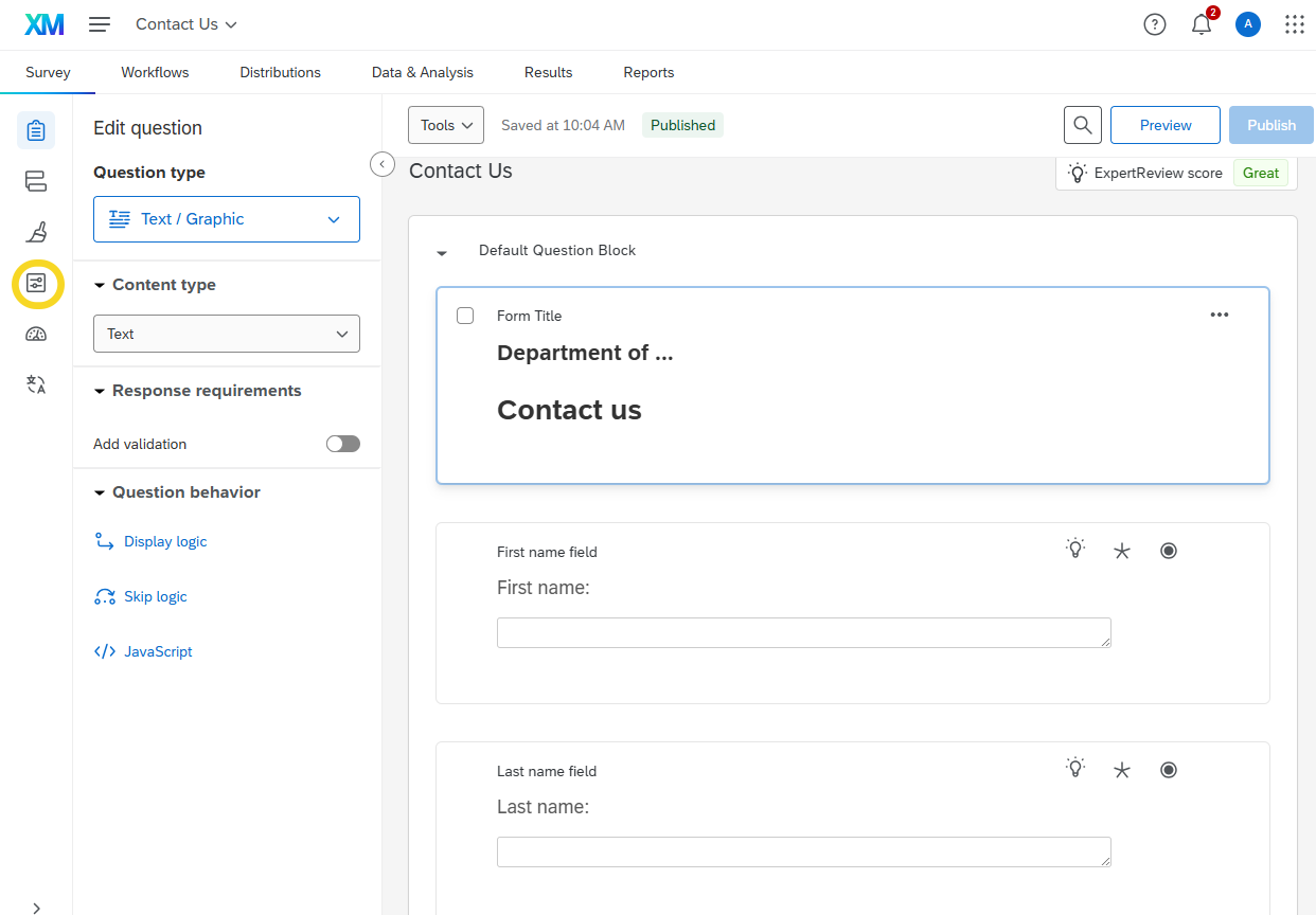 In the Survey menu (top left) select the Options button, which is found under the paintbrush.