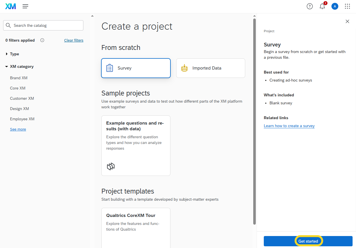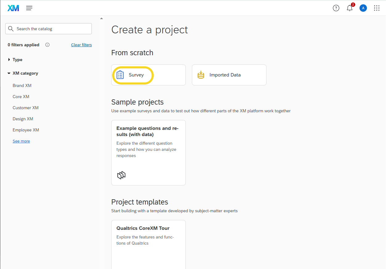 You should now be on the Create a Project screen. Under From Scratch select Survey.