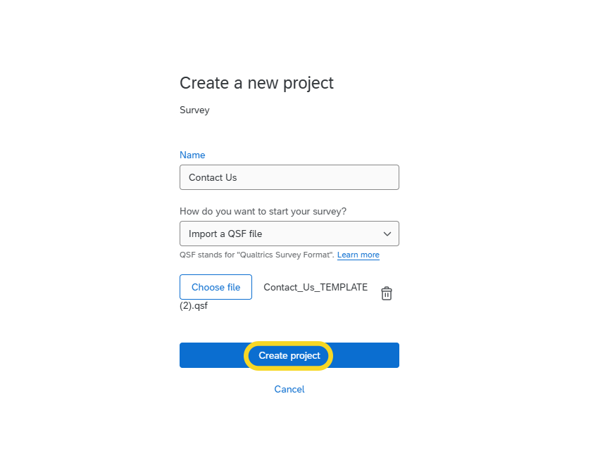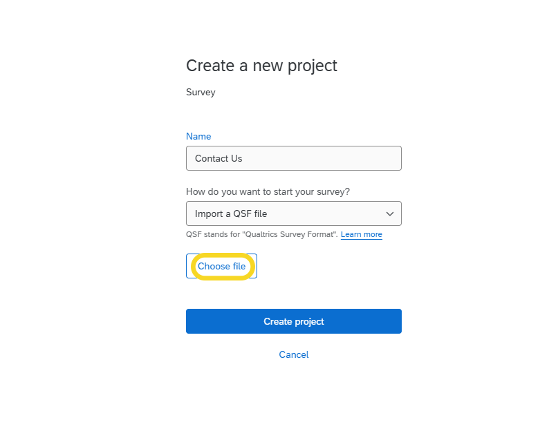 Now select the blue button labeled Choose file. Search your downloads for the QSF file you wish to import. Select the file.